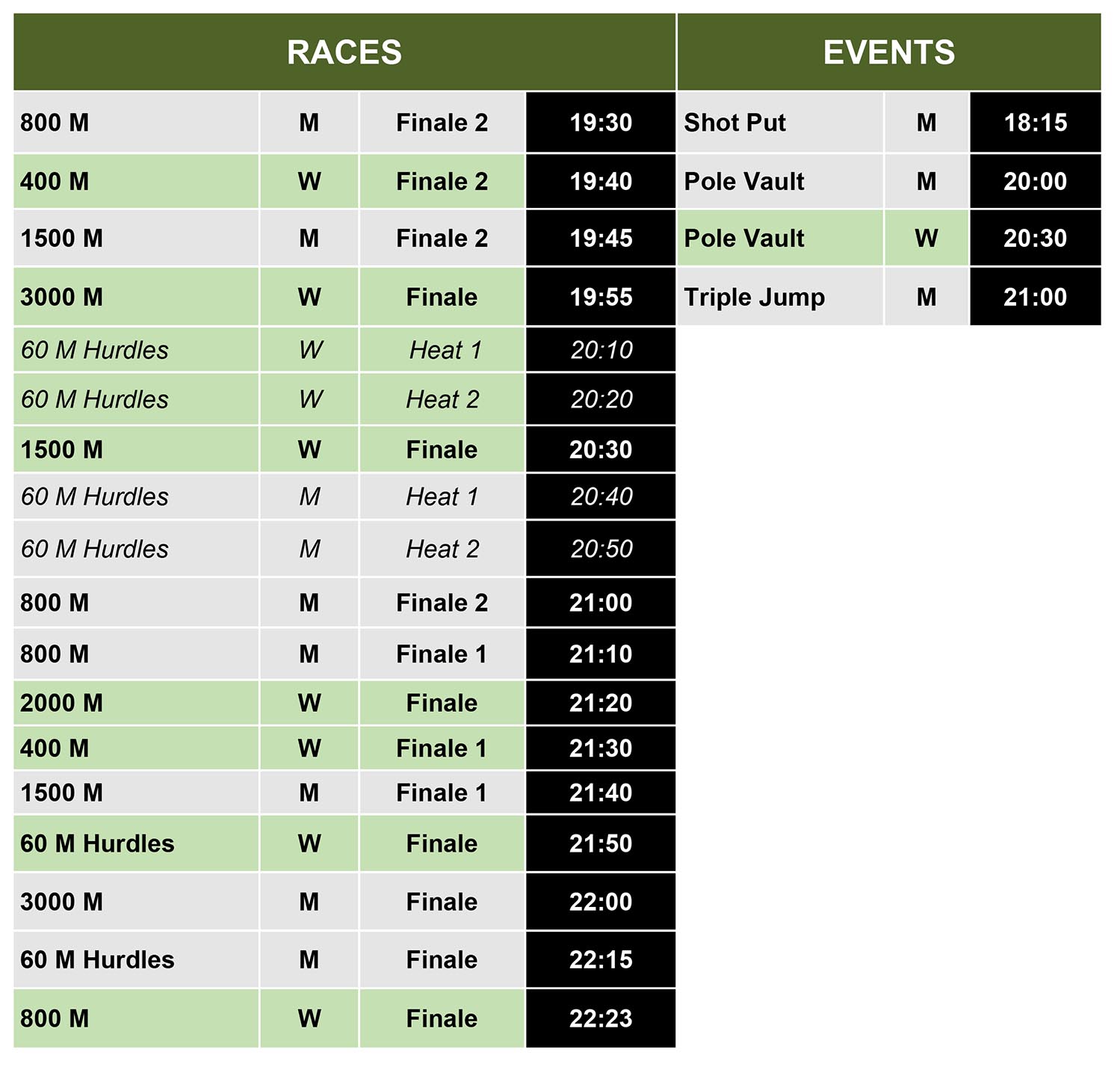 Meeting International Lievin 2026 | Live-Ergebnisse / Zeitplan / Startlisten